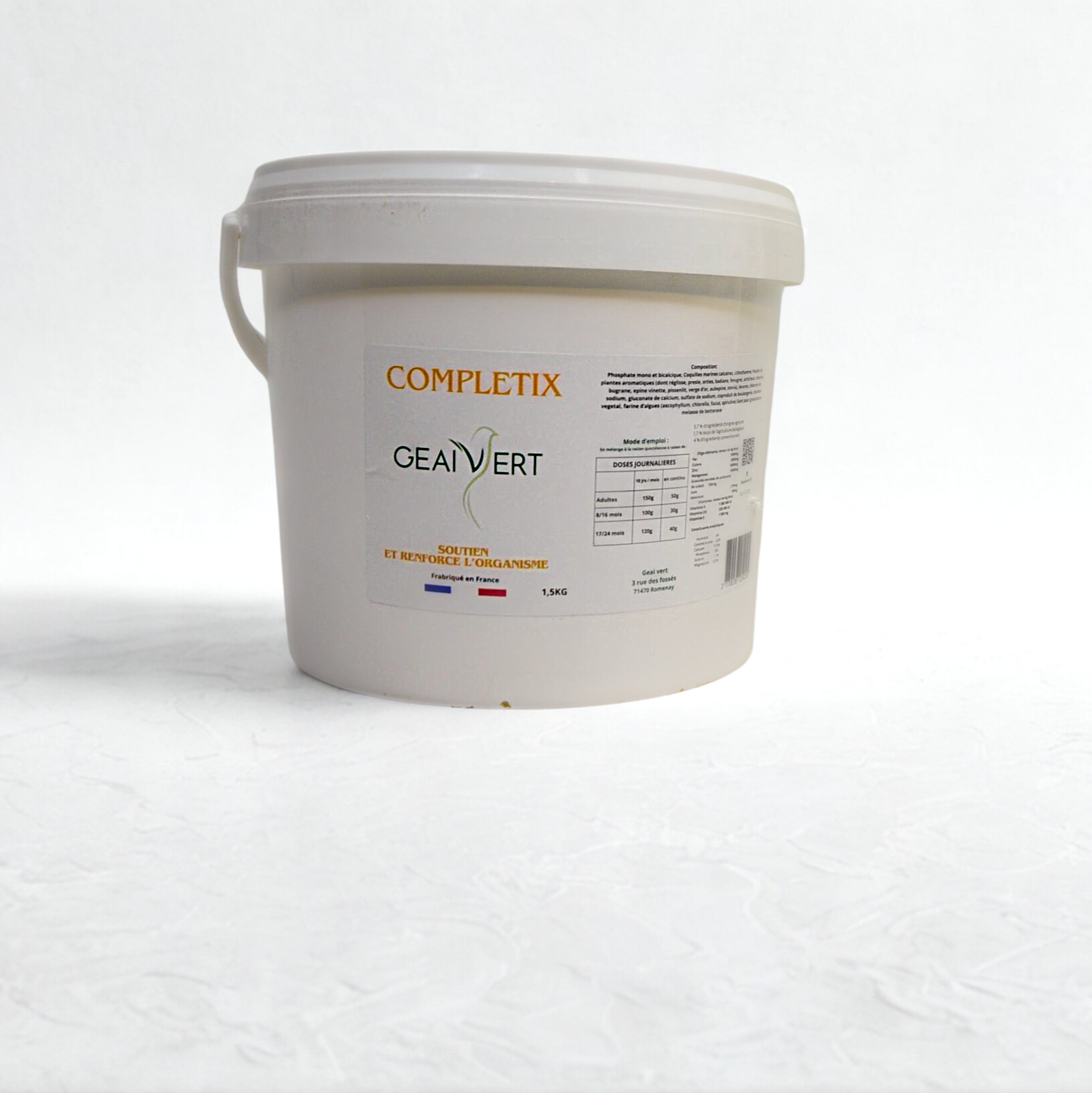 - Vitamines A, D3, E : Essentielles pour la croissance, la performance et la santé articulaire.